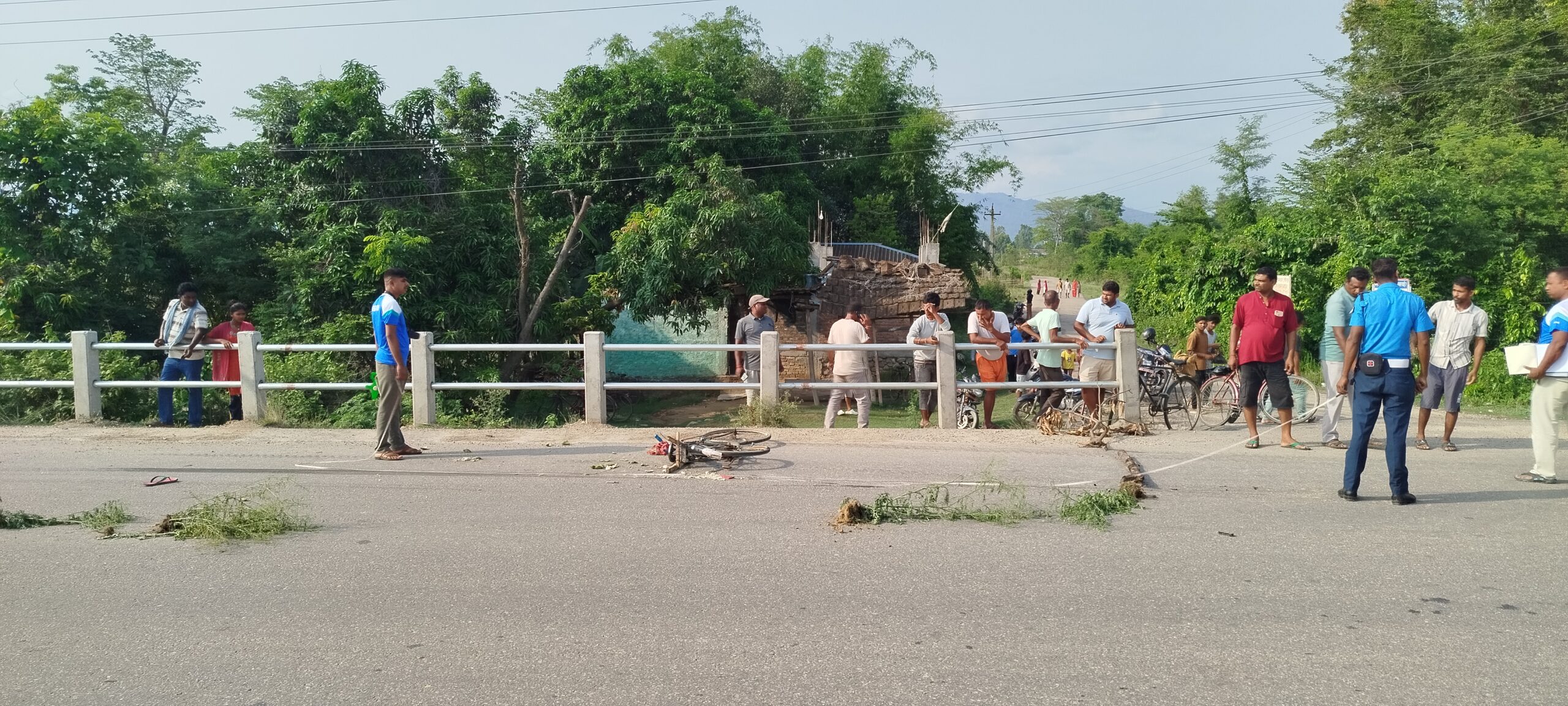 सिराहा, गोलबजार नगरपालिका-९ स्थित पुर्व पछिम राजमार्गको गोबिन्द्पुरमा चौहर्वाबाट मिर्चैयातर्फ आउँदै गरेको प्र.२-०१-००१ क ०१७१ नम्बरको टिपरको ठक्करबाट साइकलयात्री सोही नगरपालिका-९ गोबिन्दपुर बस्ने महोत्तरी गौशाला नगरपालिका-११ घर भएका ६० वर्षीय हासिम मिया सेखको मृत्यु भएको छ । टिपरले मंगलबार दिउसो ठक्कर दिँदा गम्भीर घाइते भएका उनको प्रादेशिक अस्पताल जनकपुरमा उपचारको क्रममा मंगलबार साँझ मृत्यु भएको हो । टिपर चालकलाई प्रहरीले नियन्त्रणमा लिएको छ ।